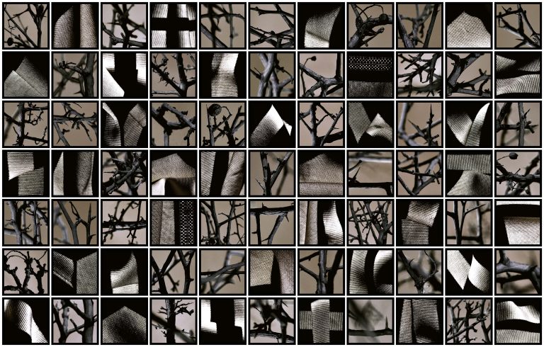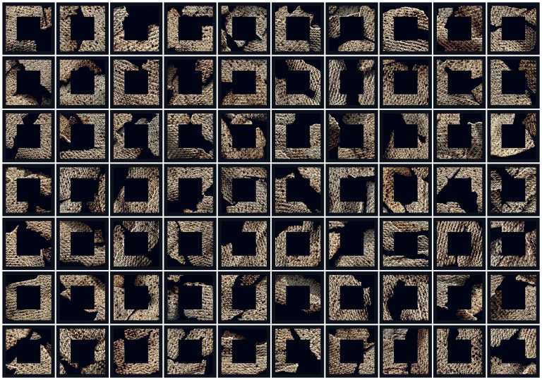 (1287-0460-70), Print on canvas, matzah installation, 250×358 cm, 98.43×140.94 inch